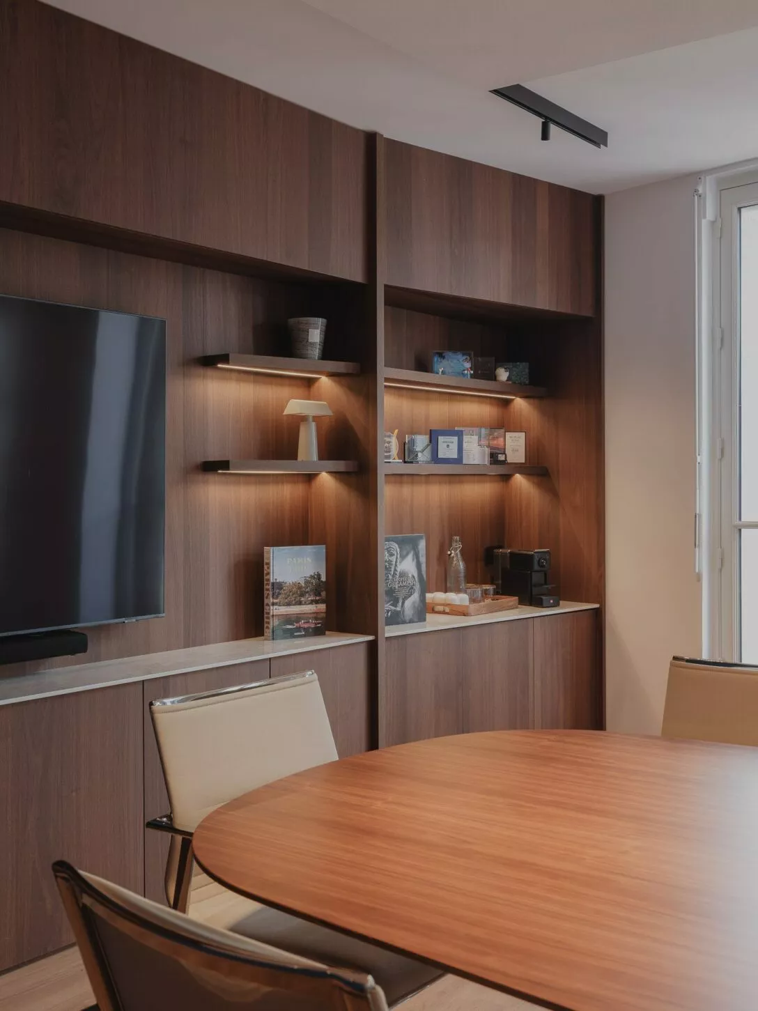 Nous avons imaginé l’ensemble des espaces et sélectionné le mobilier avec un parti pris affirmé : traduire élégance et pérennité à travers des matériaux nobles et intemporels. Un jeu de volumes, de lumière et d’agencement opère, offrant un environnement à la fois raffiné, fonctionnel et accueillant, où chaque détail sert l’identité et l’ambition de Verto.